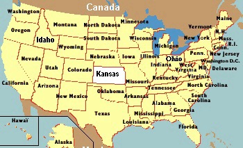 J’arrive au Kansas (pas la ville, l’état. Suivez bazwell !). Devise : Aux cieux à travers les difficultés. (Trop ésotérique pour moi).