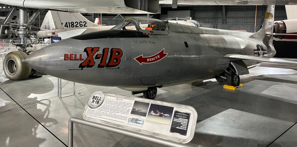 Mais aussi, et surtout, pour voir un Bell X-1. Premier avion à franchir le mur du son, le 14 octobre 1947. Avec le célèbre Chuck Yeager aux commandes. C’est aussi la première fois que des témoins entendaient le bang supersonique. L’équipe au sol a d’ailleurs cru à tort que ce son, similaire à celui d’une explosion, signifiait la perte de l’avion et de son pilote. Cinq copies du X-1 ont été fabriquées. Celui devant moi est le second; le X-1B.