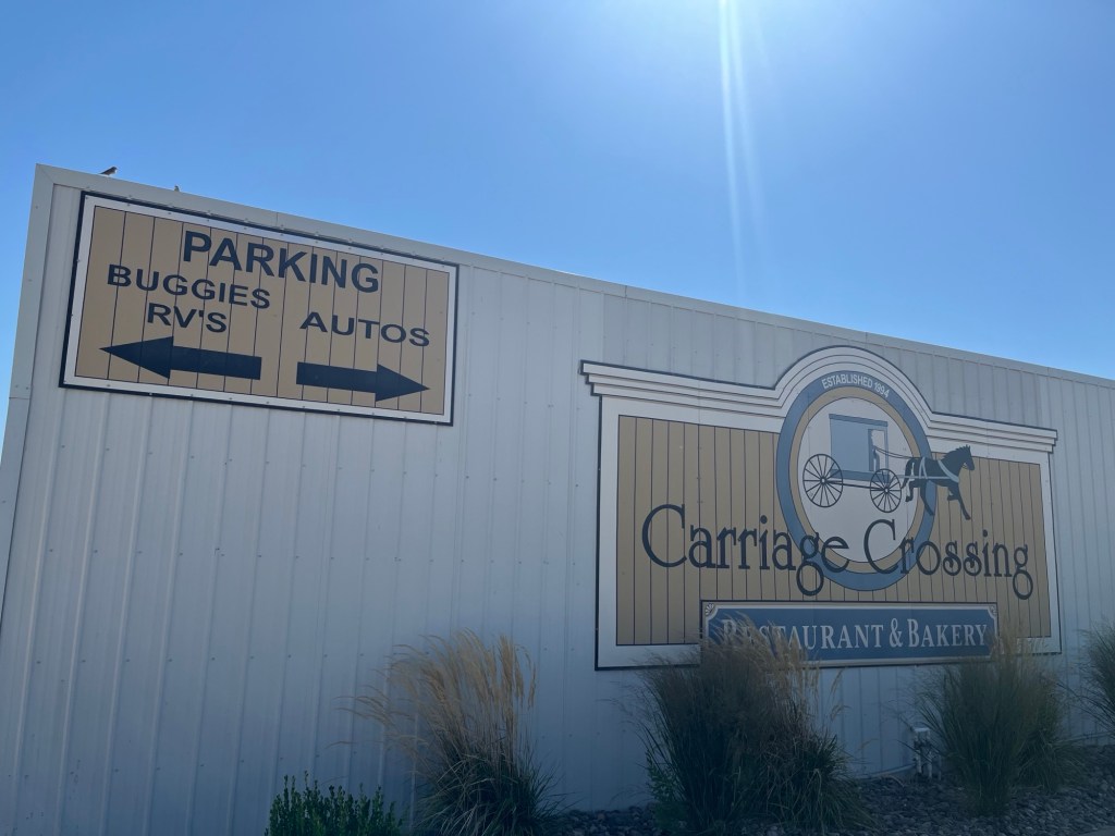 On est chez les Amish. Je stationne mon attelage du côté des buggies à chevaux (malheureusement, il n’y en avait pas).