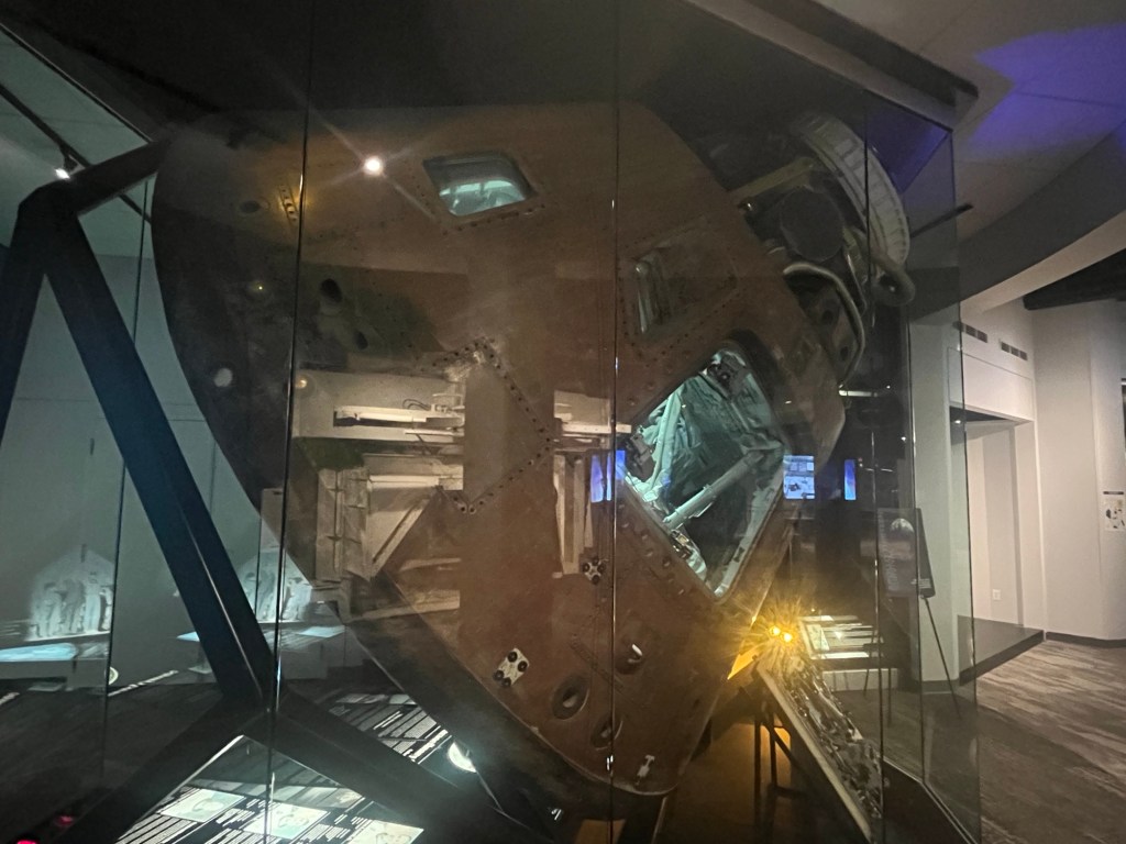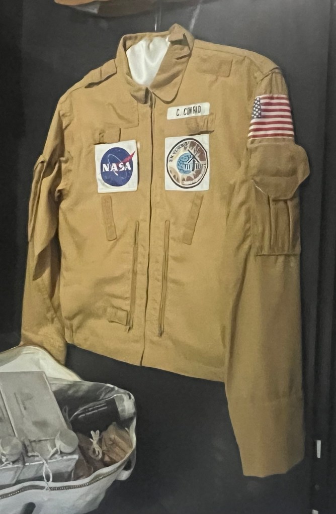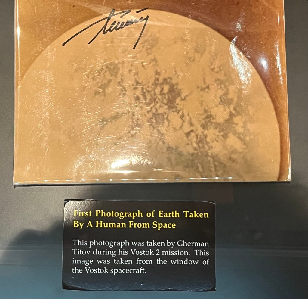 La vraie de vraie capsule Liberty Bell 7 (du vol Mercury 4).La vraie de vraie capsule Gemini X.La vraie de vraie capsule d’Apollo XIII.Un vrai de vrai blouson de l’astronaute Charles Conrad (3e homme sur la Lune).Une vraie de vraie caméra qui a fait le vol Gemini 5.La toute première photo de la Terre prise de l’espace. Par le cosmonaute russe Gherman Titov.