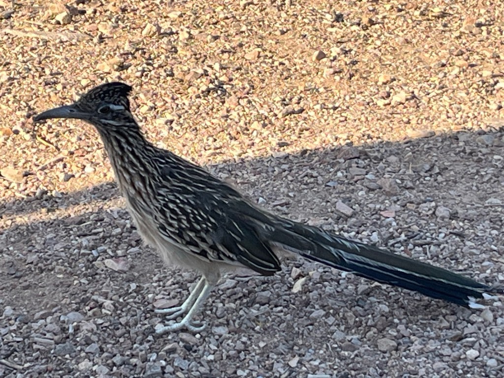 11. Un oiseau vient me quêter de la bouffe. C’est tu ça un “road runner” ? (En français : Un géocoucou).