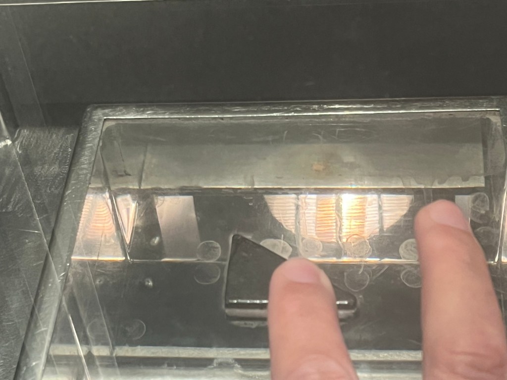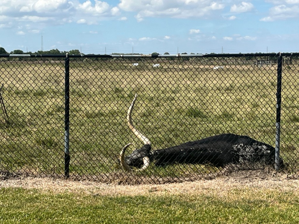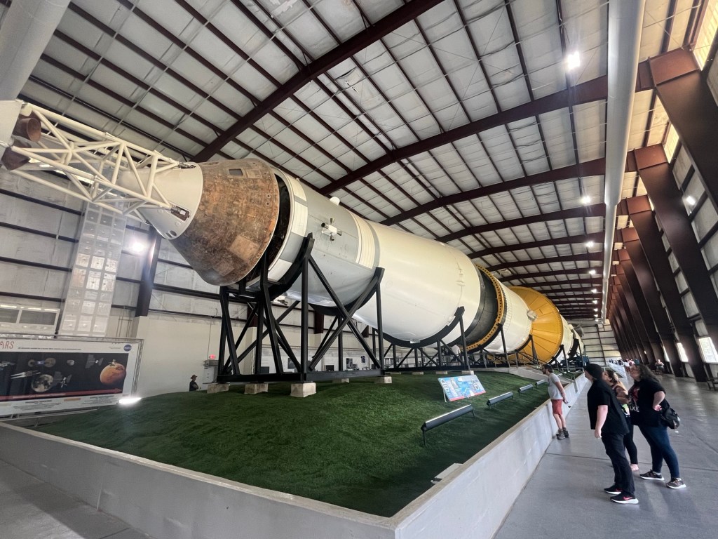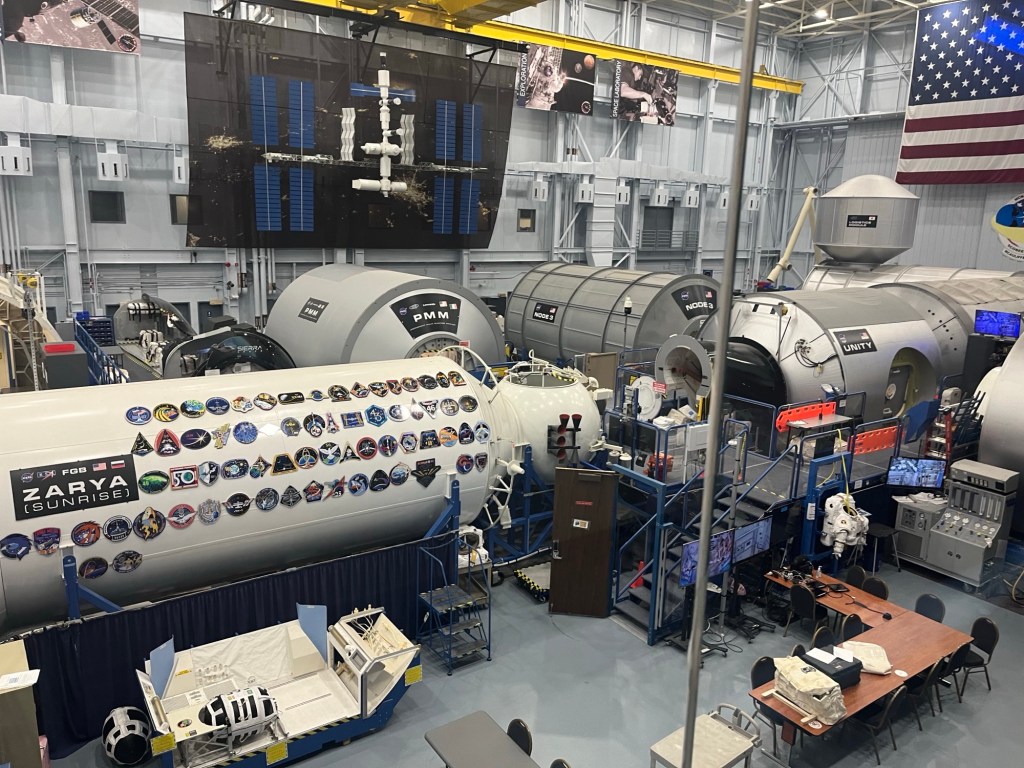 Mais les trois fusées Saturn V dédiées à ses vols étaient déjà construites. L’une (la seule pleinement opérationnelle) est exposée ici à Houston, une seconde (que j’ai vu en 1976) se trouve au Cap Canaveral en Floride, et la troisième a servi à faire des essais sur un site en Alabama.Du bon manger. Pour la Station Spatiale Internationale. Tout est déshydraté (question de poids et d’espace). Suffit de rajouter de l’eau et chauffer.Building 9 : C’est là qu’on conçoit les prototypes des engins spatiaux, ainsi que les maquettes d’entraînements.Le vaisseau Orion qui, propulsé par la fusée Artemis, mènera les astronautes vers la Lune.Ce drapeau est mis en berne lorsqu’il n’y a pas d’américain dans l’espace. Il n’a pas été baissé depuis 27 ans (donc 27 ans de présence ininterrompue d’au moins un(e) américain(e) ).Le 747 NASA 905 (avec une maquette de navette).Mon doigt sur une pierre lunaire rapportée par Apollo 17.On retrouve la même toilette sur la Station Spatial Internationale. Le confort toi !Un petit troupeau de bœufs (endormis ?) à longues cornes jouxte le Centre spatial.
