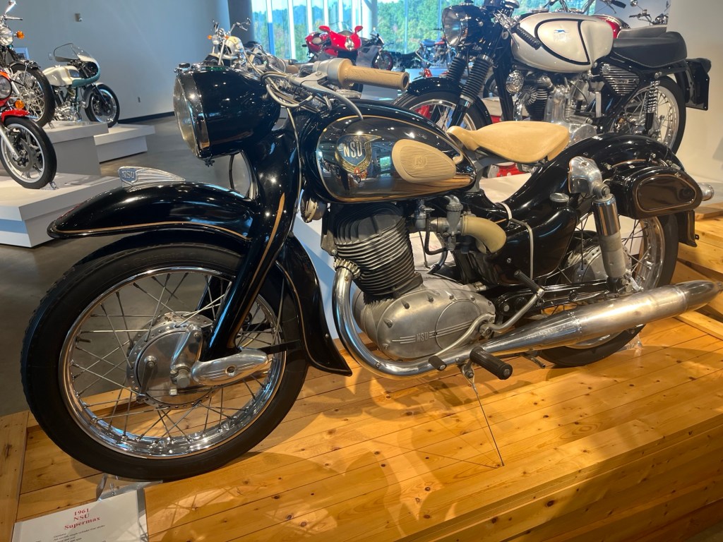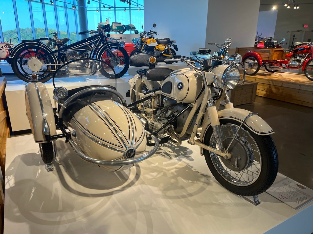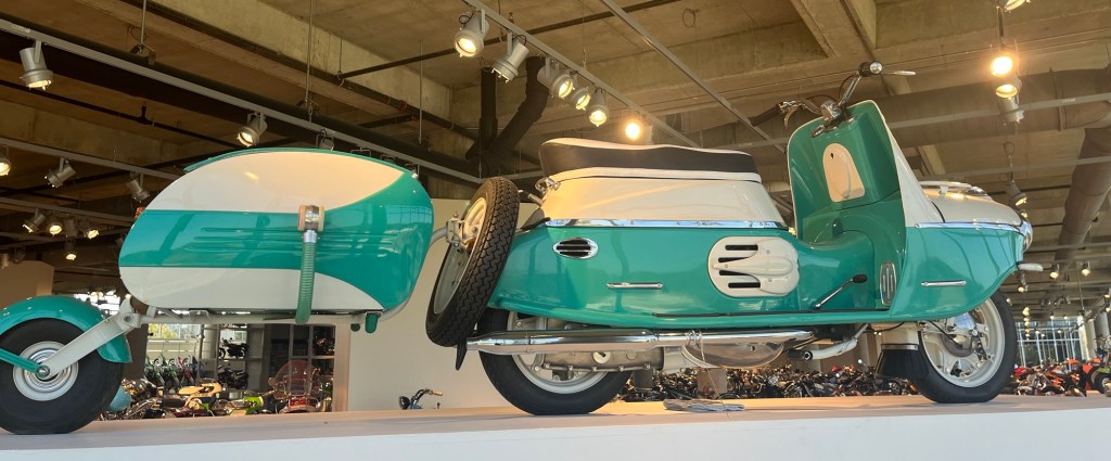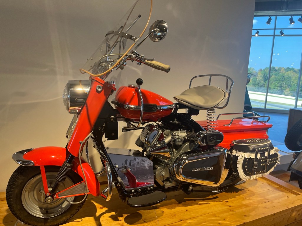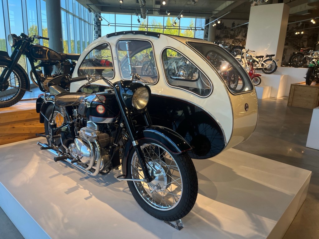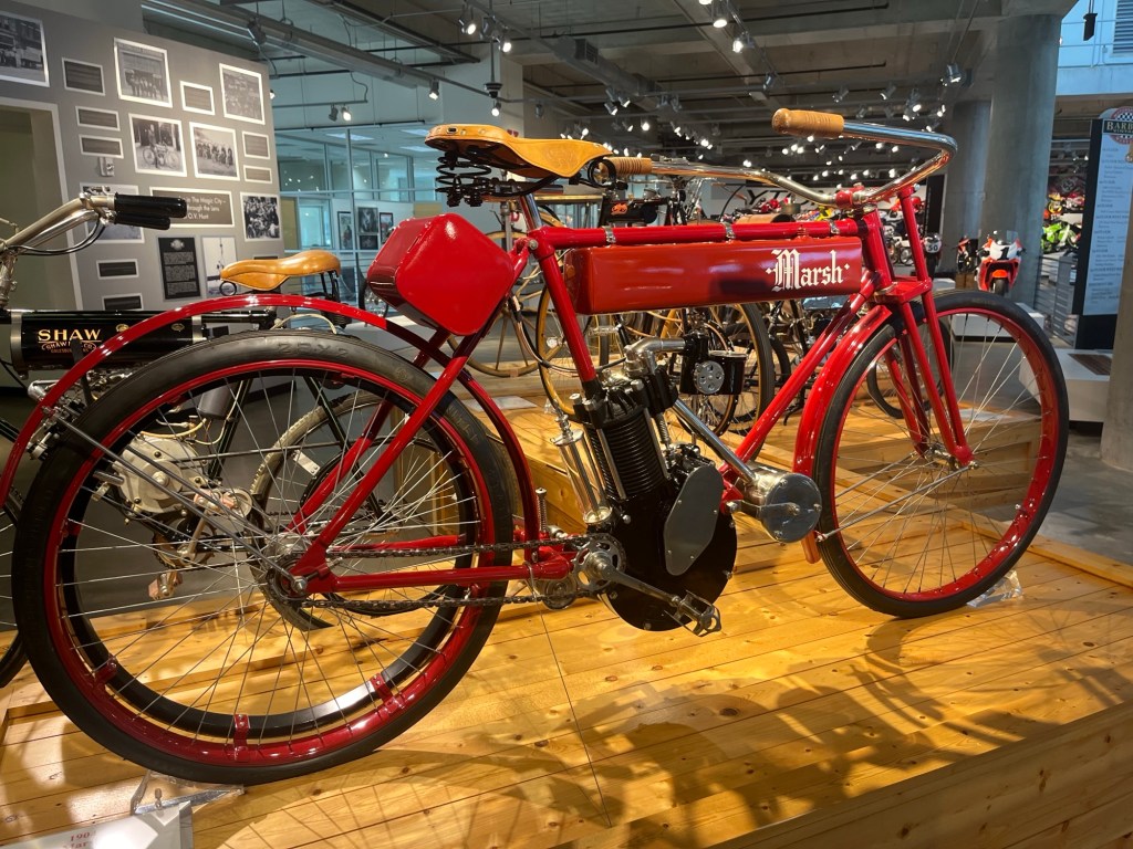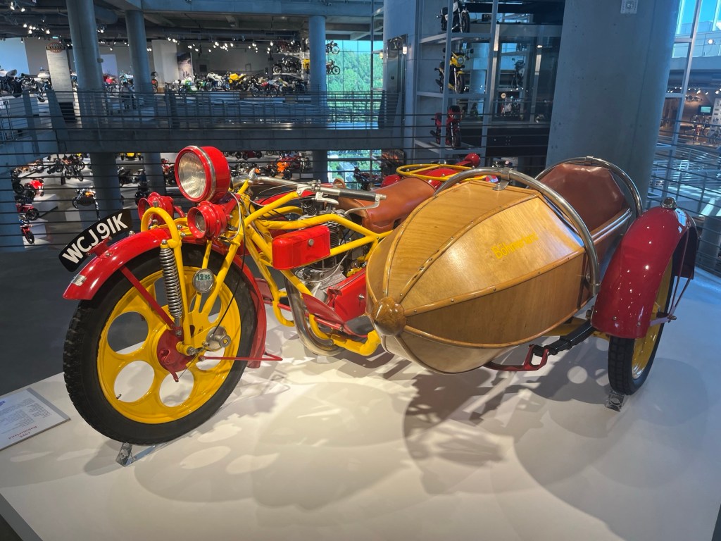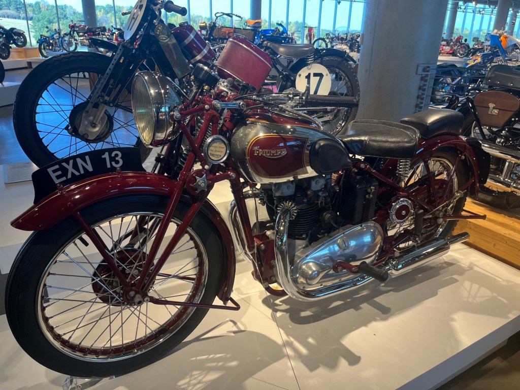 Commençons par celle-ci. Une Honda 500 Four … identique à ma première moto (mais brune).Une Indian 1932. Moto des policiers de Los Angeles.Cushman Super Silver Eagle 1965. Une espèce de scooter déguisé en Indian (355 cc quand même).Cezeta CZ 1959. Tchèque. Conçue pour le camping.Honda Z50R. Devrait rappeler un certain souvenir (constitué d’un paquet de bleues) à Grande Sœur.BMW R60/Steib 1966.Guzzi 1924.Curtiss Tandem 1908. Notez les deux sièges.Pierce Four 1910. Ma préférée.Kawasaki Z2300 V12. 2,300 cc : Qu’est-ce ça donne ?NSU Supermax 1961. Allemande.Bohmerland 1925.Triumph Speed Twin 1938.FN (Fabrique Nationale) Light Four 1906. Une belge. Donc le nom du modèle est en anglais 🥴.Marsh 1904.Ner-a-Car Model B 1926. La gueule toi !Harley-Davidson CAC 1934.Harley-Davidson JD 1925. Pour la livraison de biscuits.Indian 401 1928.Majestic 1929. Française. Donc, encore une fois, un nom en anglais 🫣.Zundapp KS 750. Moto de l’armée allemande durant la Seconde Guerre.Ariel Square Four 1958.